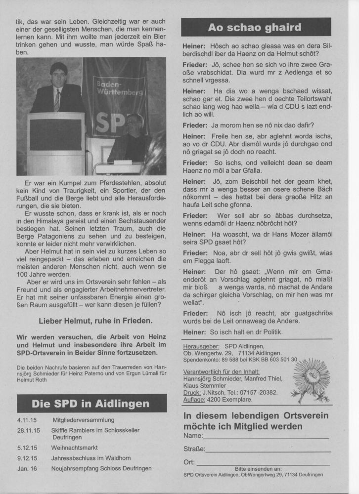 In der aktuellen Wahlperiode ist die Aidlinger SPD für die Ortschafträte nicht angetreten.