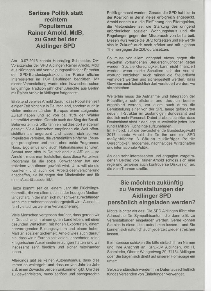 In der aktuellen Wahlperiode ist die Aidlinger SPD für die Ortschafträte nicht angetreten.
